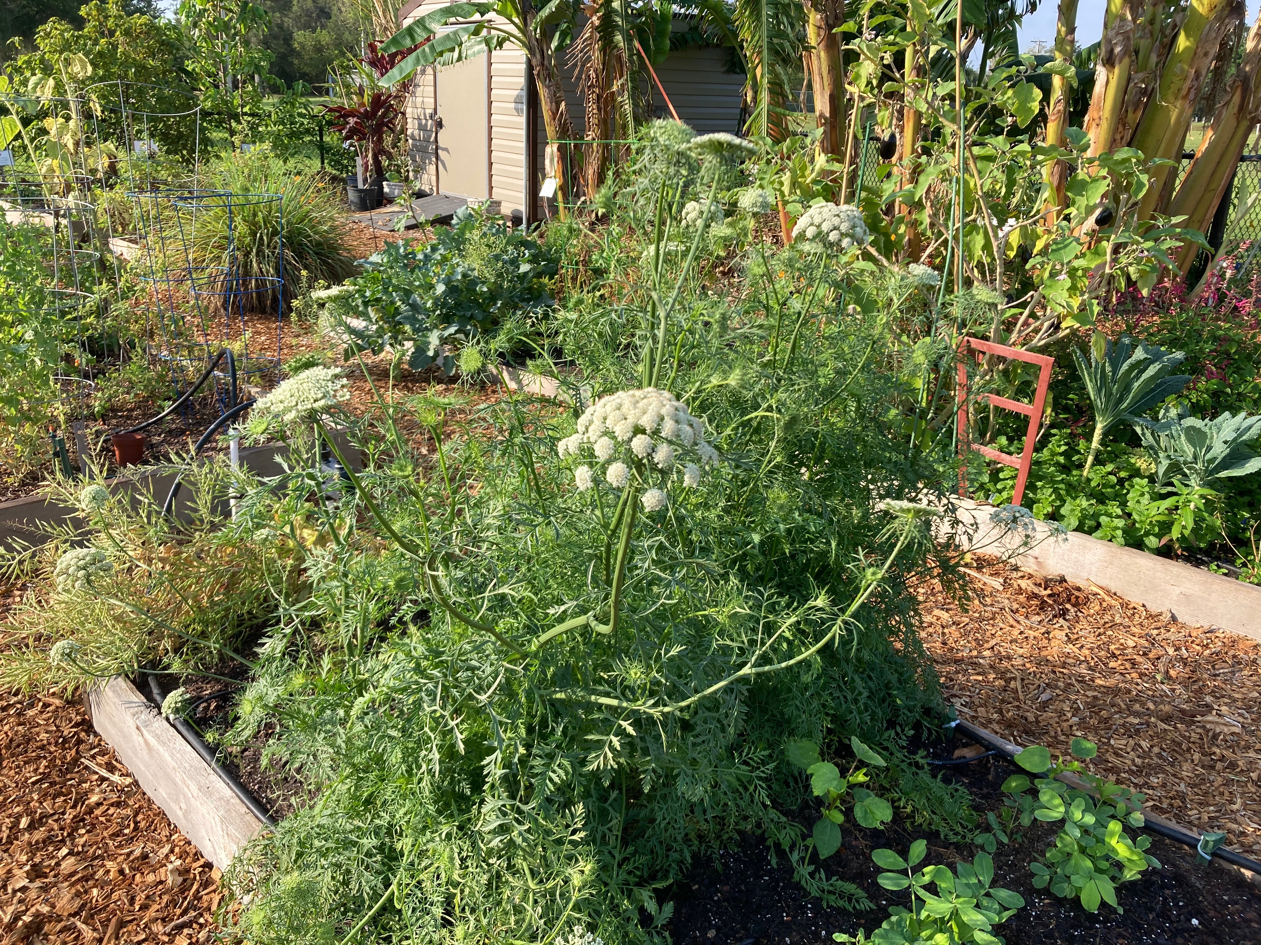 When flowers opened and pollen appeared, Reed hand-shook the flower heads over each other to transfer pollen. He did this two or more times per day during peak pollination time. Seed heads were gathered as soon as they turned brown, then put in shallow trays and brought inside for drying. When umbellets became brittle, the seed heads were hand crushed and worked through homemade screens of various mesh sizes. A small amount of seed was set aside for the next year’s crop, but Reed brought the majority to ECHO for distribution to our network.